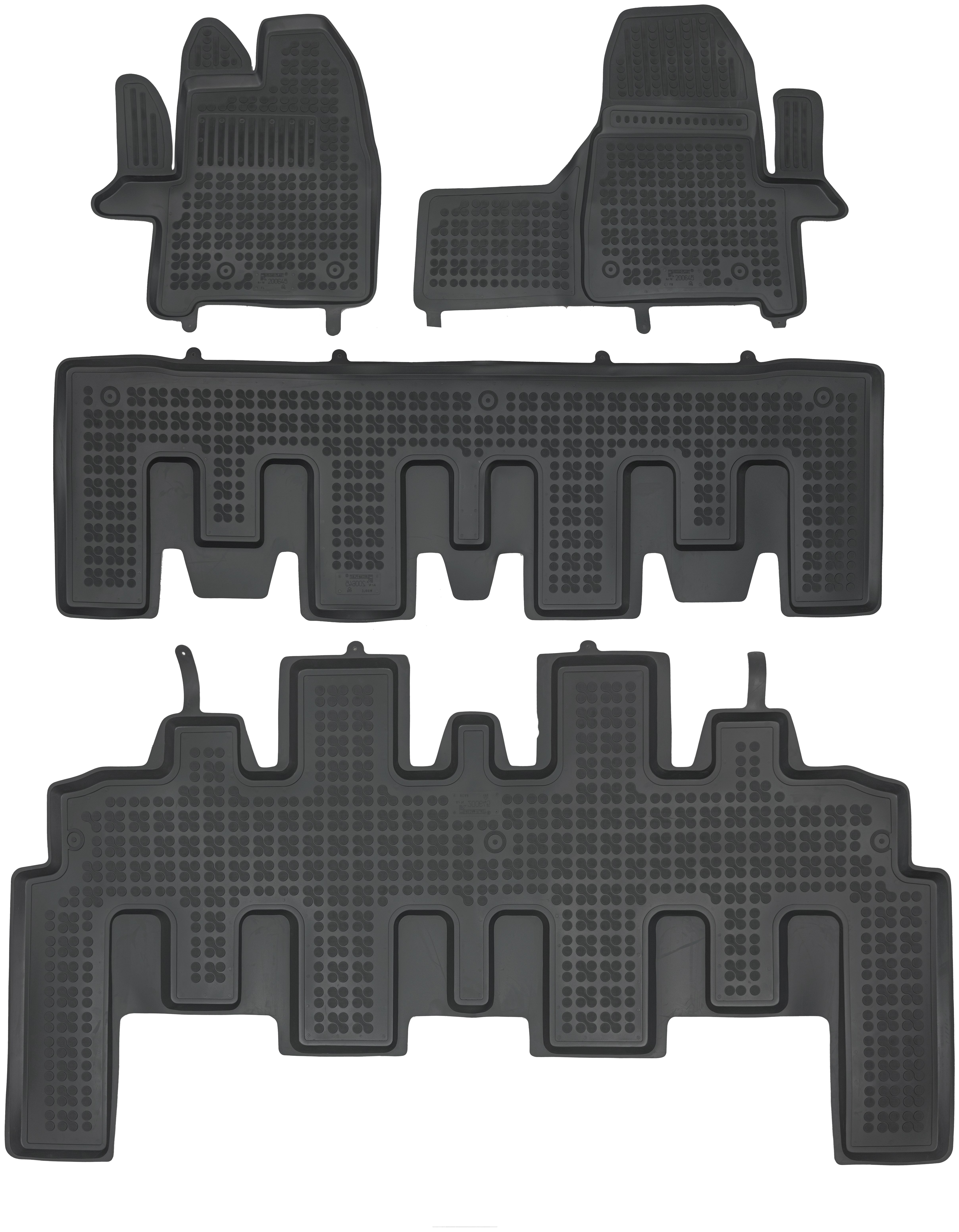 Gumowe dywaniki samochodowe pasują do Ford Tourneo Custom 2017-2023 8 osobowy, z dodatkowym wzmocnieniem od strony kierowcy, 3 rzędy, manualna skrzyni