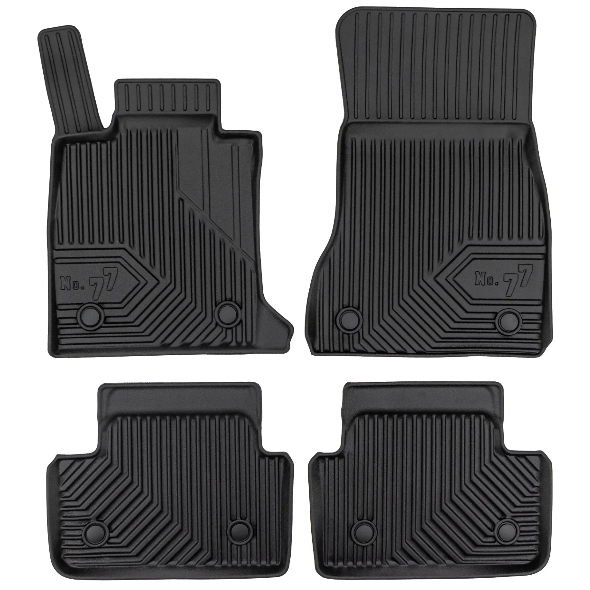 Stabilność i bezpieczeństwo – wyposażenie dywaników samochodowych No. 77 w komplet stoperów dopasowanych do oryginalnych miejsc montażowych w Twoim aucie zapewni najwyższy poziom stabilności nawet podczas ostrego hamowania. Ponadto dywaniki wykonane są z ekologicznych i pozbawionych nieprzyjemnych zapachów materiałów, które są bardzo łatwe w utrzymaniu czystości.