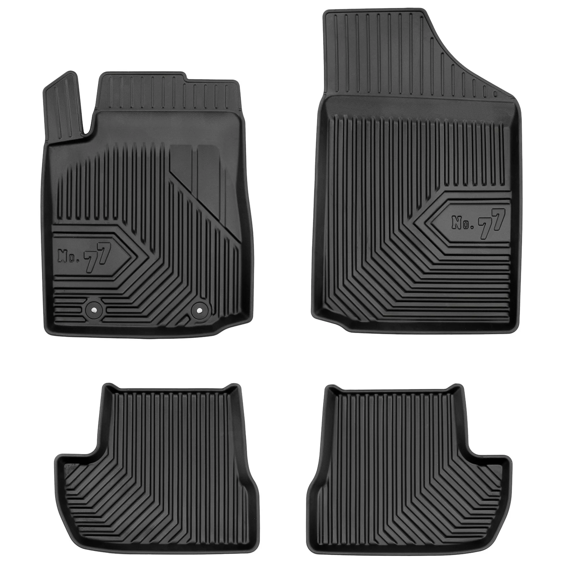 Stabilność i bezpieczeństwo – wyposażenie dywaników samochodowych No. 77 w komplet stoperów dopasowanych do oryginalnych miejsc montażowych w Twoim aucie zapewni najwyższy poziom stabilności nawet podczas ostrego hamowania. Ponadto dywaniki wykonane są z ekologicznych i pozbawionych nieprzyjemnych zapachów materiałów, które są bardzo łatwe w utrzymaniu czystości.