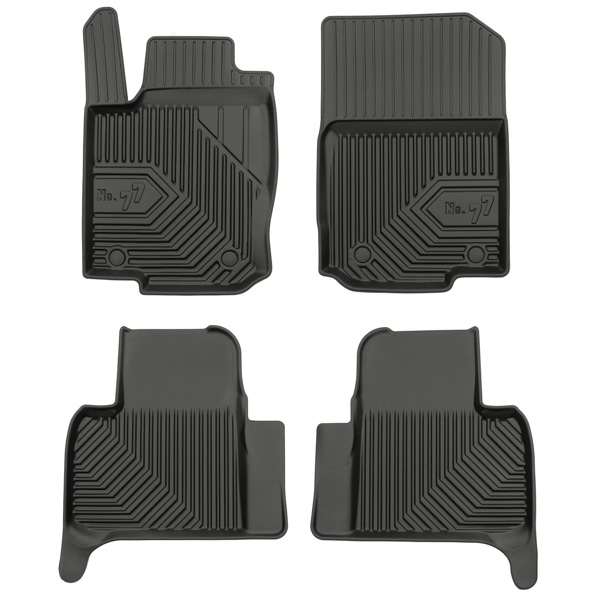 Stabilność i bezpieczeństwo – wyposażenie dywaników samochodowych No. 77 w komplet stoperów dopasowanych do oryginalnych miejsc montażowych w Twoim aucie zapewni najwyższy poziom stabilności nawet podczas ostrego hamowania. Ponadto dywaniki wykonane są z ekologicznych i pozbawionych nieprzyjemnych zapachów materiałów, które są bardzo łatwe w utrzymaniu czystości.