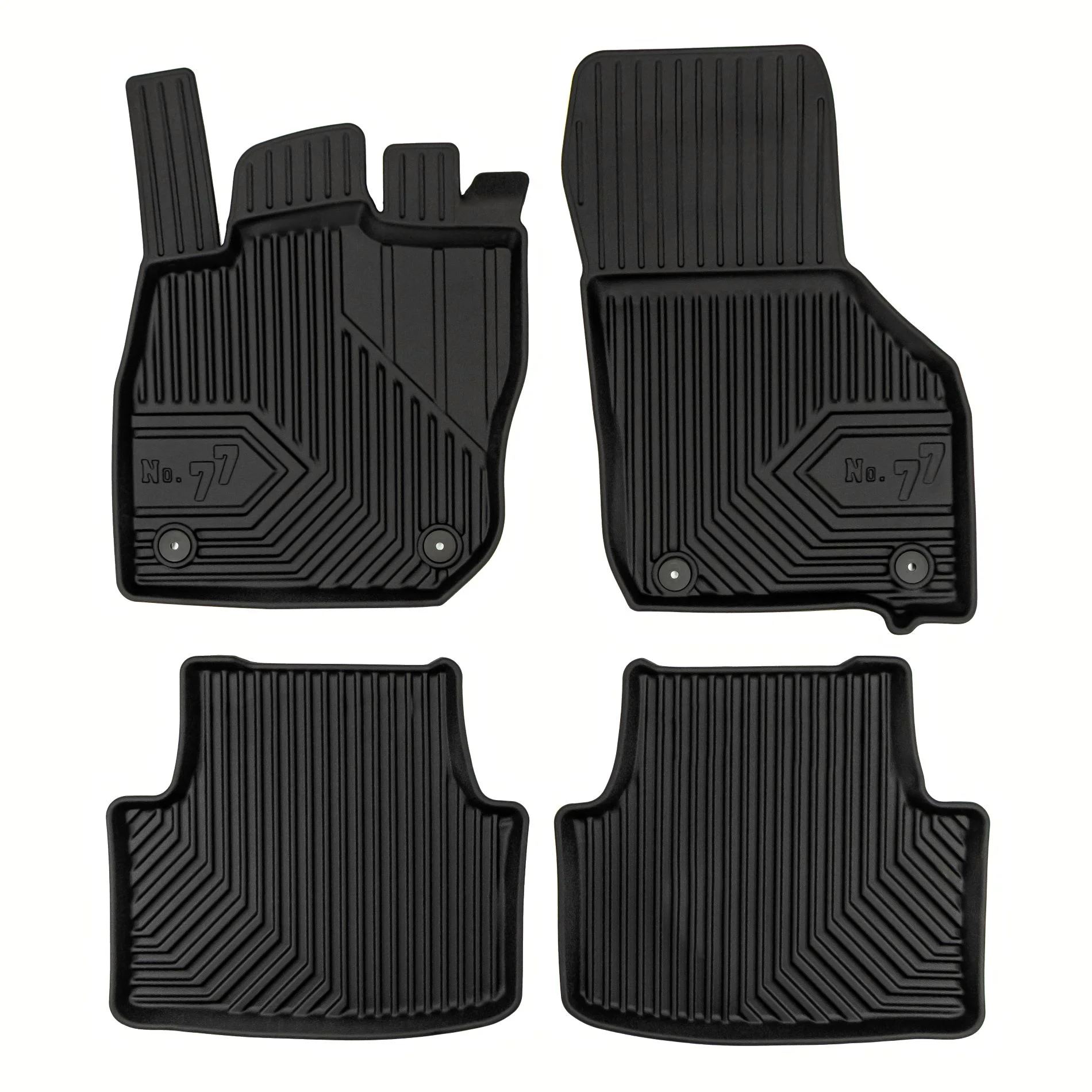 Stabilność i bezpieczeństwo – wyposażenie dywaników samochodowych No. 77 w komplet stoperów dopasowanych do oryginalnych miejsc montażowych w Twoim aucie zapewni najwyższy poziom stabilności nawet podczas ostrego hamowania. Ponadto dywaniki wykonane są z ekologicznych i pozbawionych nieprzyjemnych zapachów materiałów, które są bardzo łatwe w utrzymaniu czystości.