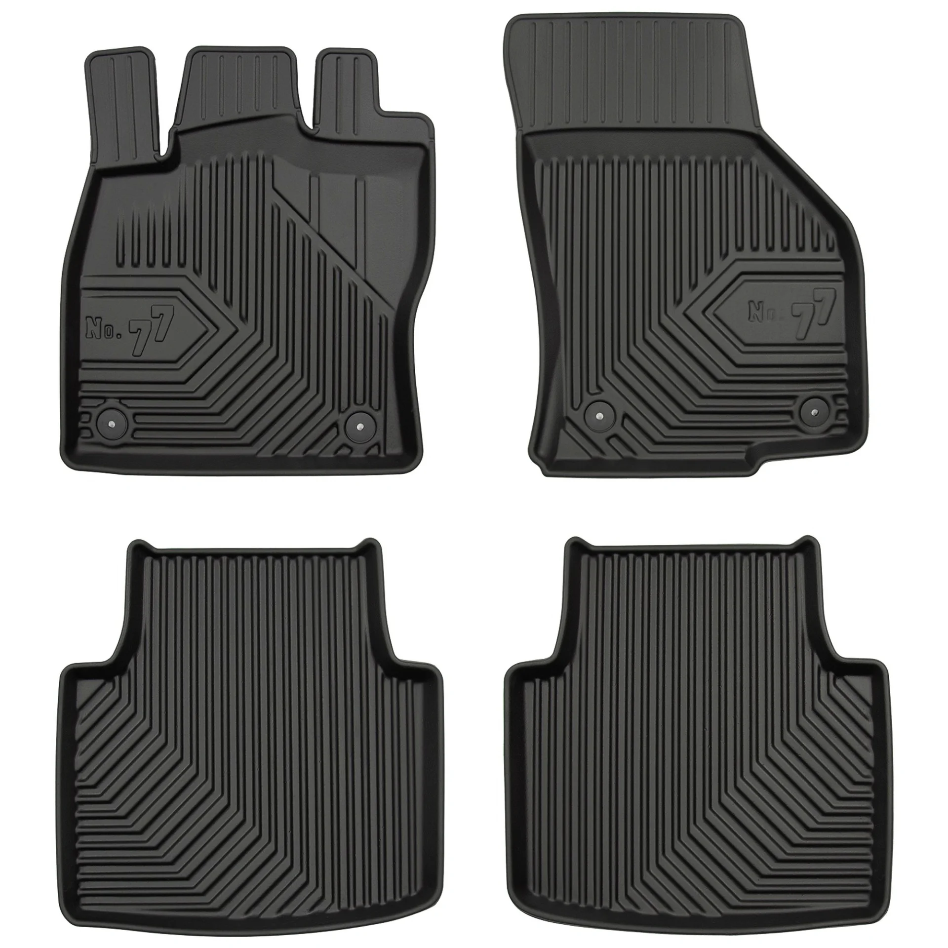 Stabilność i bezpieczeństwo – wyposażenie dywaników samochodowych No. 77 w komplet stoperów dopasowanych do oryginalnych miejsc montażowych w Twoim aucie zapewni najwyższy poziom stabilności nawet podczas ostrego hamowania. Ponadto dywaniki wykonane są z ekologicznych i pozbawionych nieprzyjemnych zapachów materiałów, które są bardzo łatwe w utrzymaniu czystości.