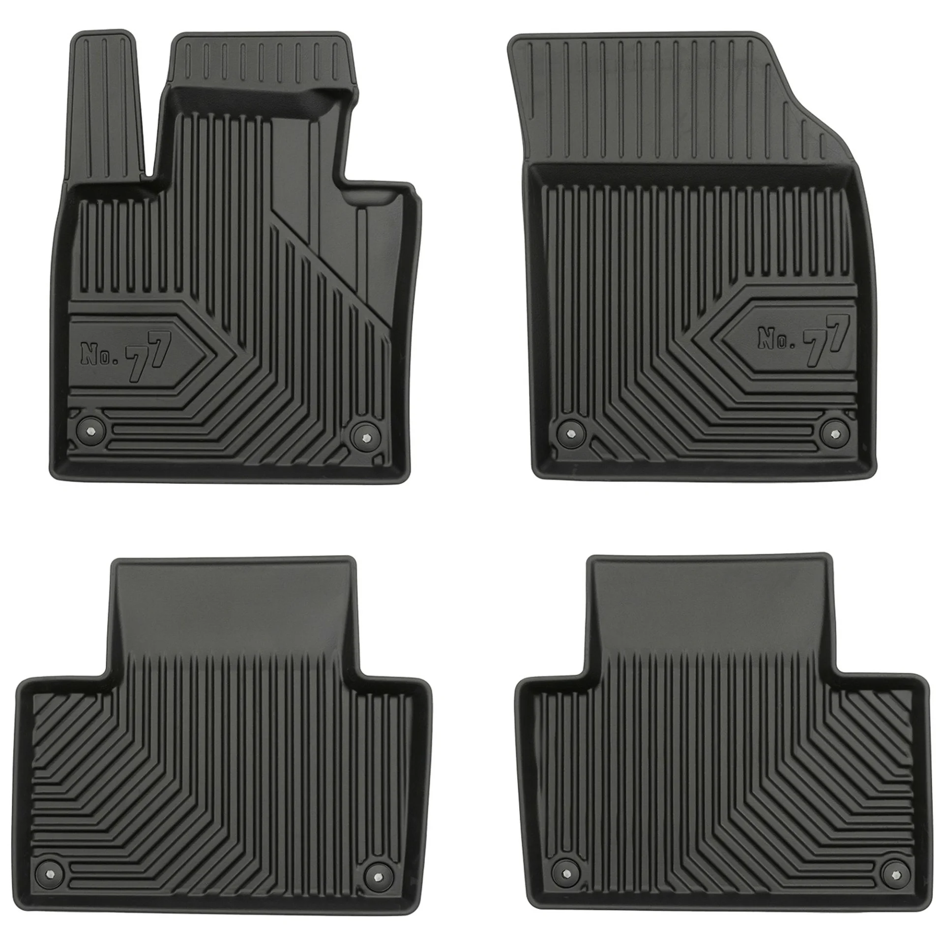 Stabilność i bezpieczeństwo – wyposażenie dywaników samochodowych No. 77 w komplet stoperów dopasowanych do oryginalnych miejsc montażowych w Twoim aucie zapewni najwyższy poziom stabilności nawet podczas ostrego hamowania. Ponadto dywaniki wykonane są z ekologicznych i pozbawionych nieprzyjemnych zapachów materiałów, które są bardzo łatwe w utrzymaniu czystości.